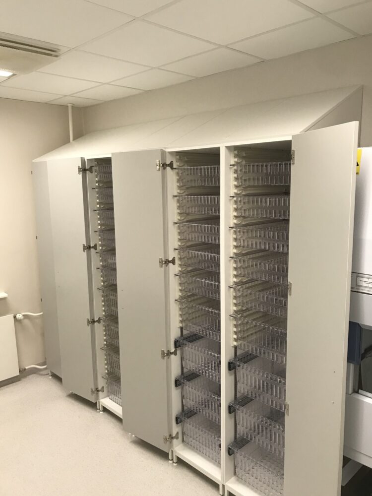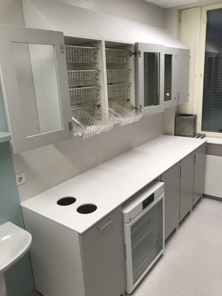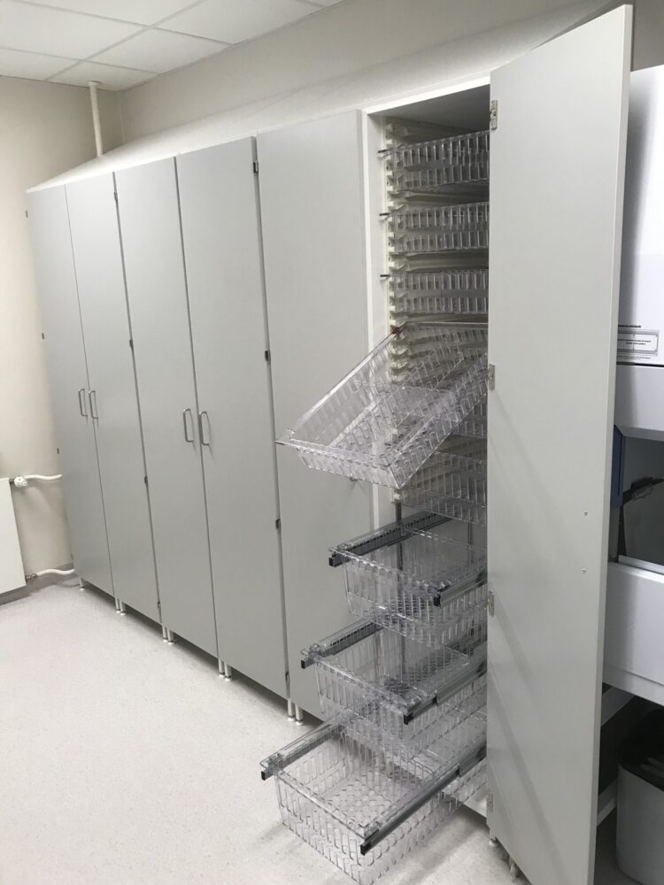 Paigaldasime Tallinna Lastehaigla intensiivraviosakonna ravimilattu eritellimusmööbli koos Pegasus Medical ISO 400×600 korvlahendustega ja SMEG meditsiinilised külmikud.