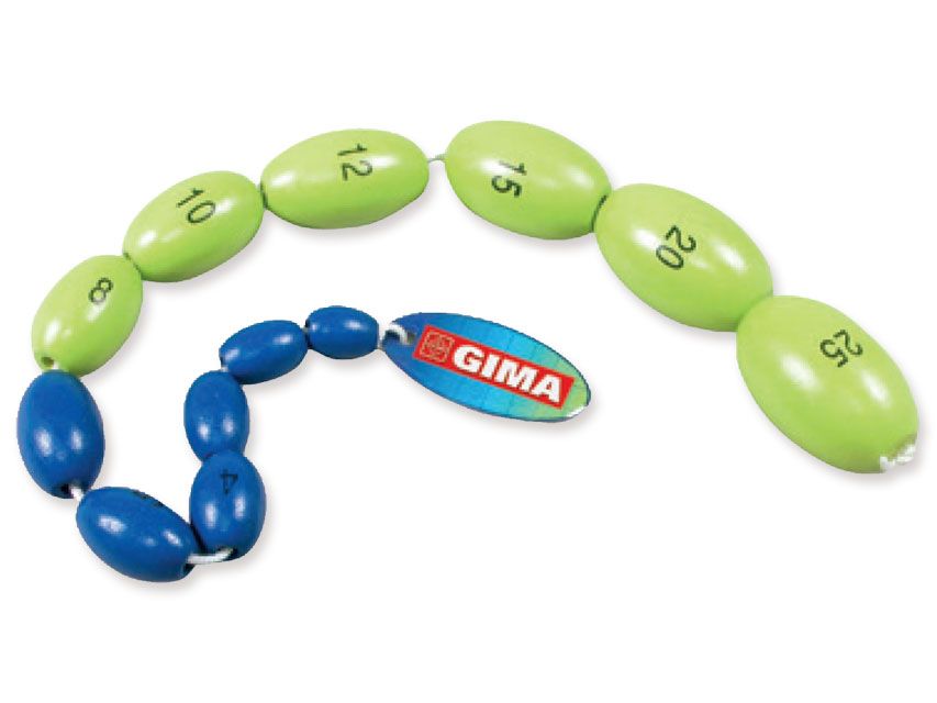 12 nummerdatud puidust helmest suuruses 1 kuni 25 mm
